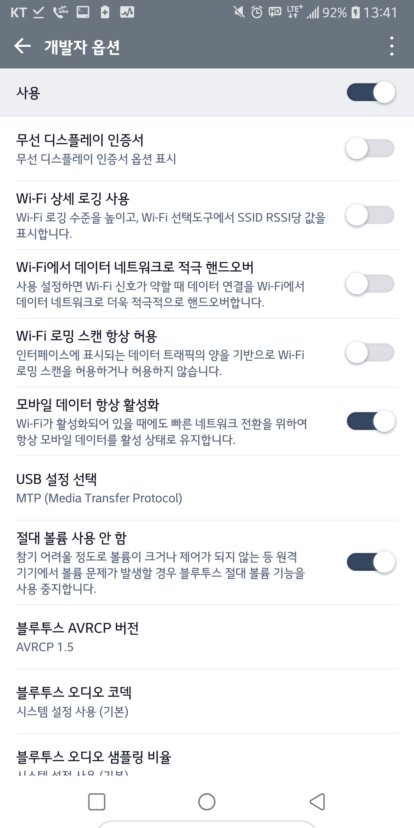 4. 핸드폰 개발자 모드 네트워크-usb 설정 선택 변경(선택 사항)