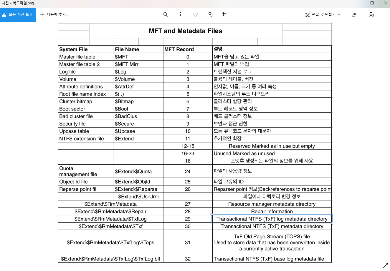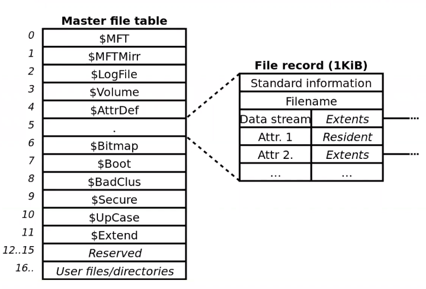 정리하자면 MFT는 모든 파일과 디렉토리에 대한 정보를 담고 있는 테이블이고