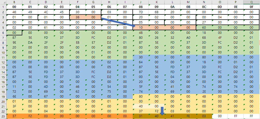노란 영역 중에 40 00부분이 Offset runlist 라는 부분이다