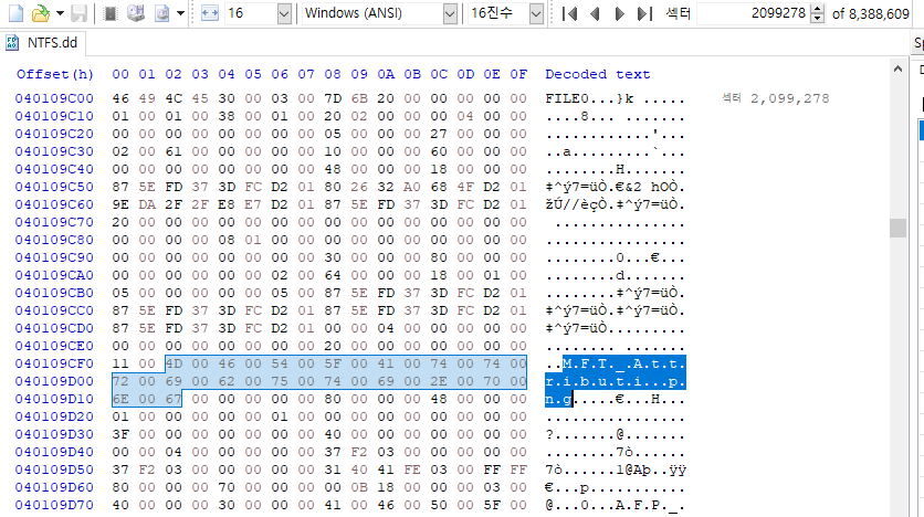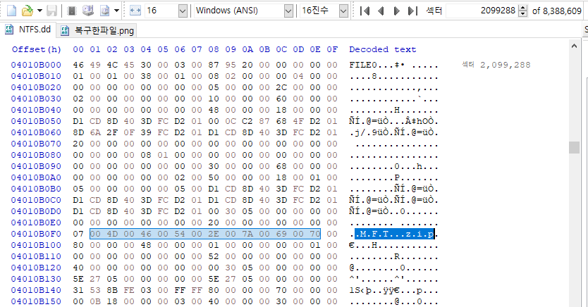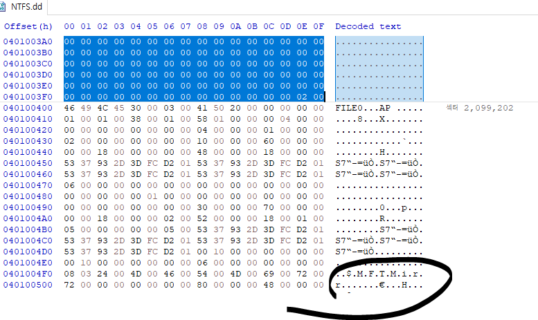 이 사진에서 0번째 $MFT가 2099200가 된다