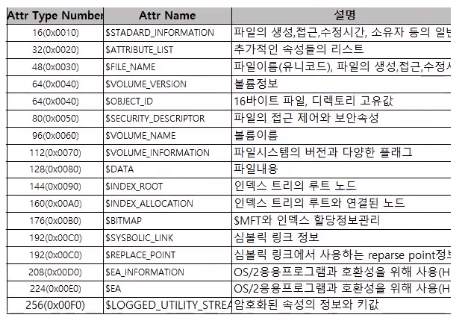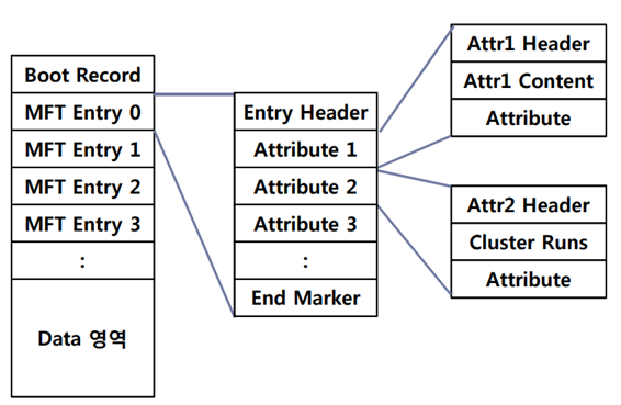 MFT Entry는 Attrubute들로 이루어져있다->Attribute들은 3가지 정보를 가진다->3가지 정보