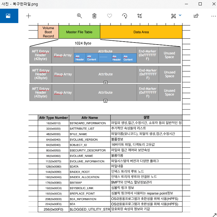 여기서 MFT Entry와 Attribute에 대해서 좀만 더 봅시다