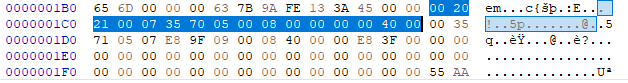 첫 번째 파티션을 보면 08 00 00 00이라는 곳에 있다는 것을 할 수 있다