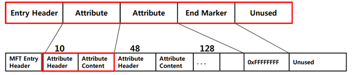 MFT Entry는 MFT Entry Header + Attribute로 구성된다