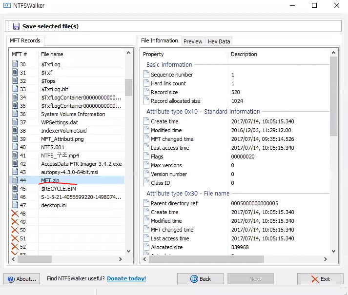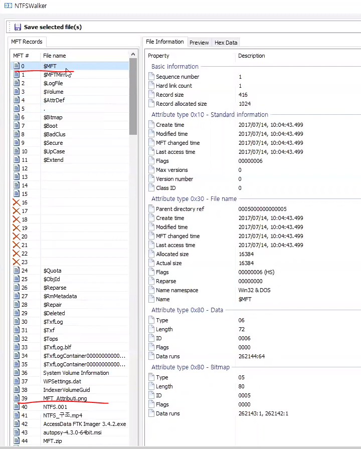 맨 아래를 가 보면 $MFTMirr가 있다