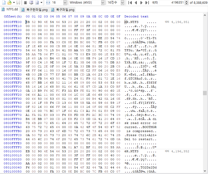 NTFS의 백업본 찾기