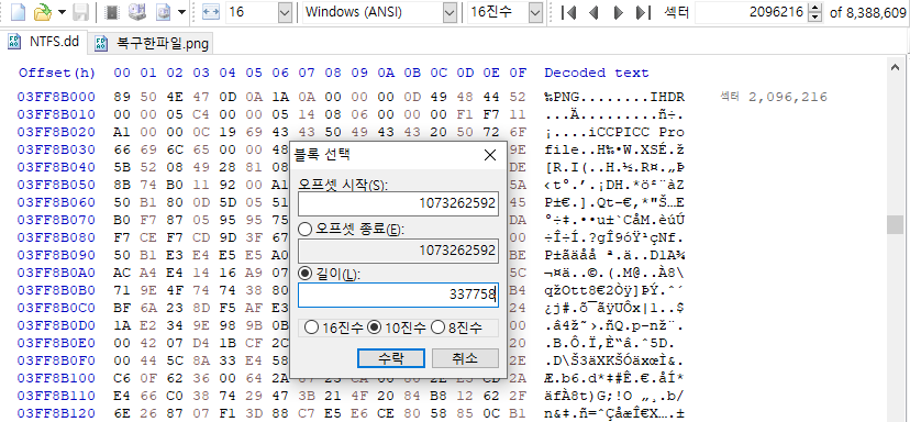 해당 섹터로 가서 파일 사이즈만큼 블록 잡고 png였으니까 png로 저장