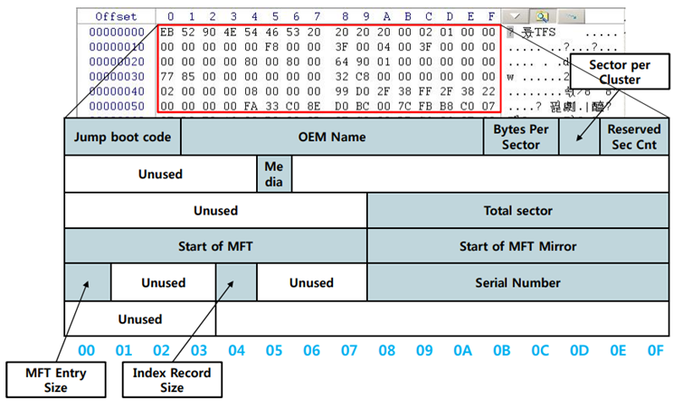 NTFS의 내용 중 유일하게 고정되어 있는 구조체