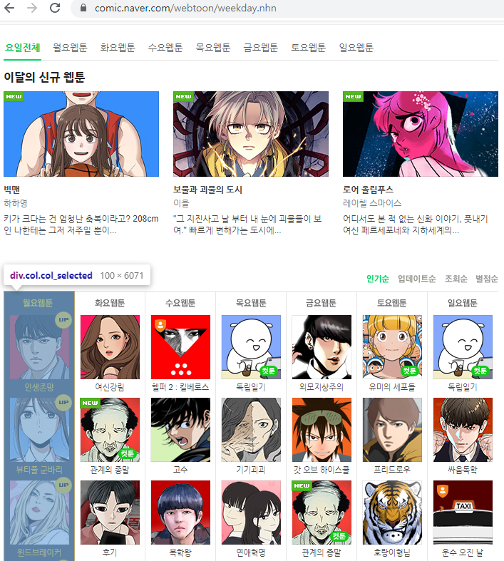 파이썬 beautifulsoup 네이버 웹툰 요일별로 크롤링하기 본문