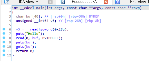 puts로 "hello"를 한 뒤에 read를 받는다