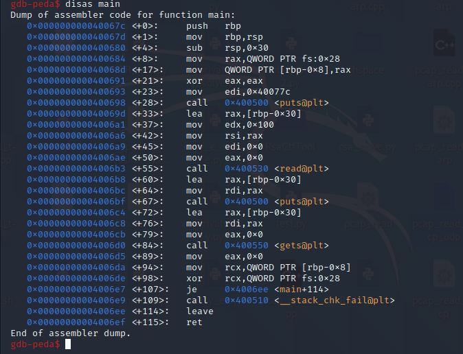 disas main으로 main함수를 본다