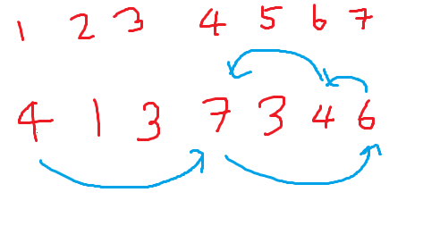 i는 1이고, 1부터 끝까지(4,7,6)가 사이클로 체크되겠다