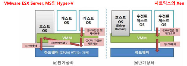 Type-1 가상화는 다시 전가상화와 반가상화로 분류된다.