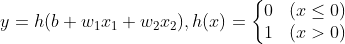 임계값을 반대로 넘기고 $b$로 기호를 치환하면 편향이 된다. 이 식을 $h(x)$라는 함수를 거치면 다음과 같이 표현할 수 있다