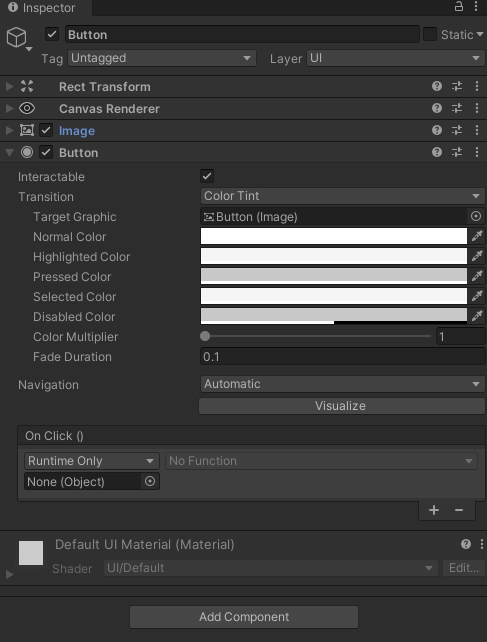 OnClick()은 비워두고, GameManager에서 Button을 찾아서 onClick.AddListener를 해 보았다