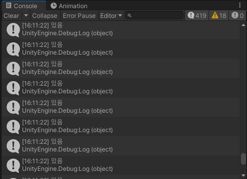 이제까지는 Start()문에서 진행했는데 아래처럼 Update() 안에다가 클론으로 생성된 Prefab의 이름을 찾고, 있다면 AddListener를 붙이고 없다면 없다고 출력하는 코드를 넣었다