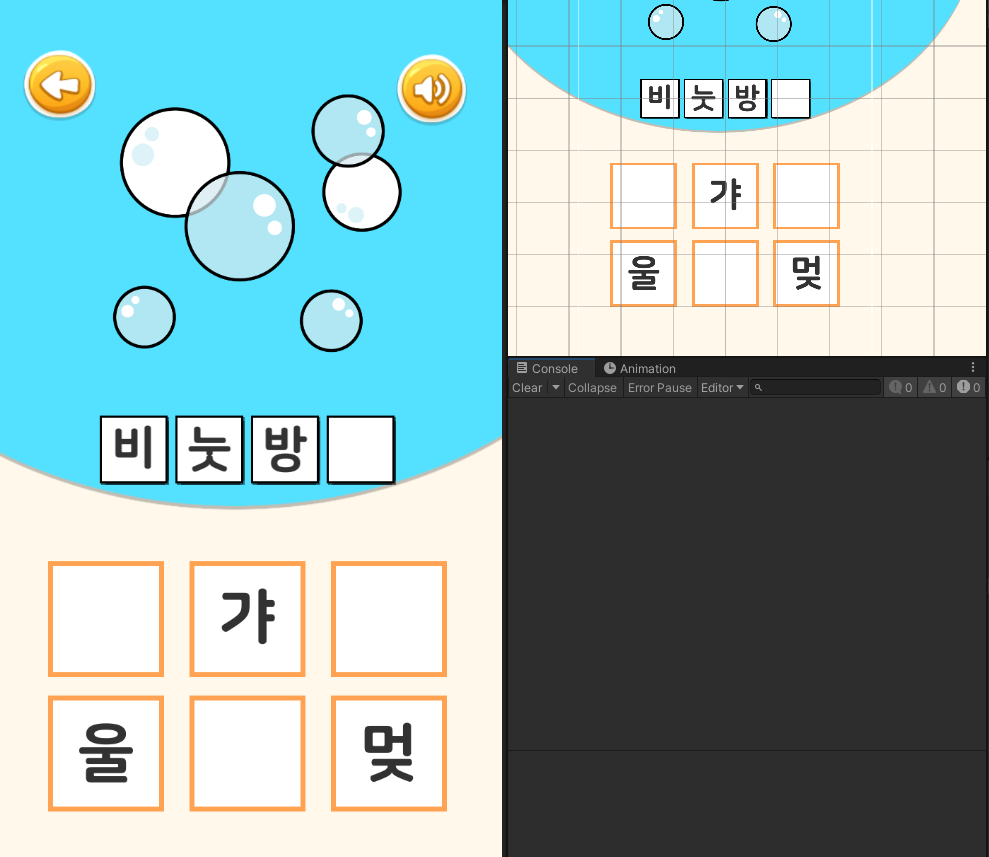 그리고 이후 '버', '스'같은 음절 오브젝트가 생성되면, 이 클론 부모에다가 자식으로 붙인다